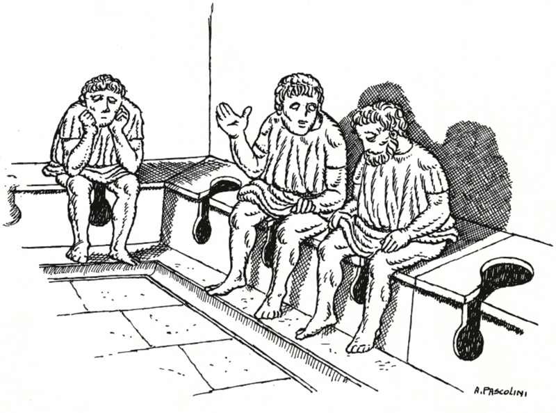 Reconstruction showing how the latrine was used(A. Pascolini) |