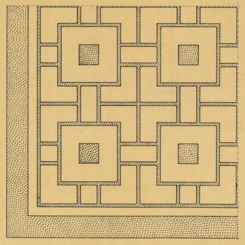 Drawing of the decorative motifs of the mosaics in the Casette Tipo |